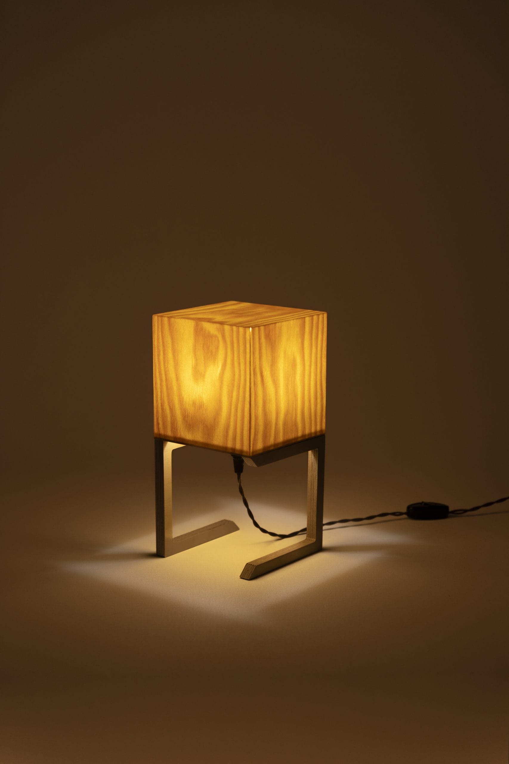 TAHTI El Yapımı Çam Ağacı Kaplamalı Masa Abajur Doğal ve Minimalist Aydınlatma